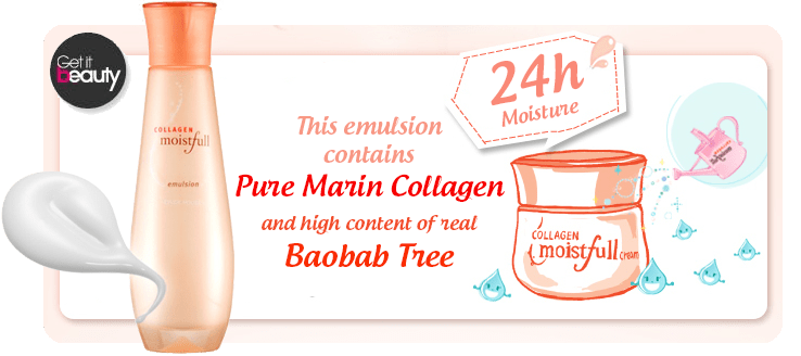 Etude House Collagen Moistfull Emulsion is aconcentrated moisturizer that immerses skin in rich moisture to improve skin health and moisture level. Fortified with Baobab Tree extract and collagen, skin is treated to advanced moisture with a dramatic improvement in texture and tone in as little as a few days of use. Increases skin elasticity and reduces the appearances of fine lines.